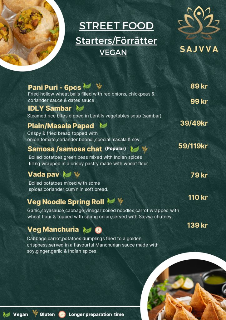 Pani puri, veg spring rolls, chatpat pakoda, masala papad.